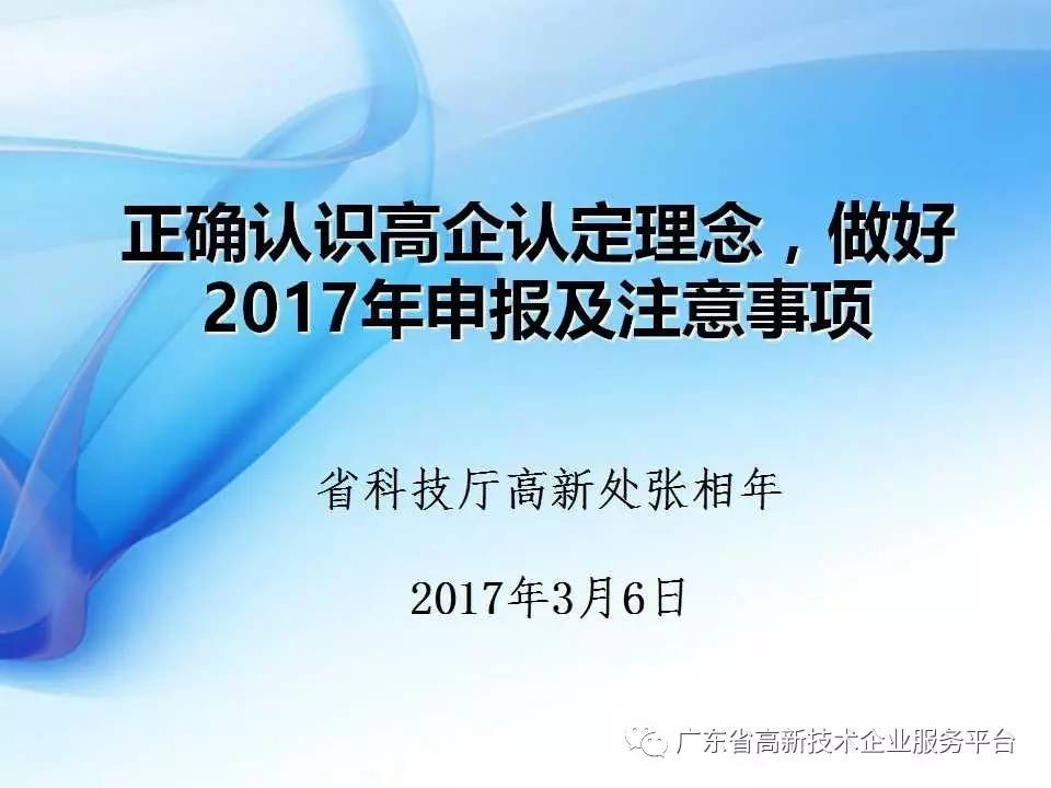 2017年广东省科技厅高企申报权威解读:正确认识高企认定理念,高企申报及注意事项